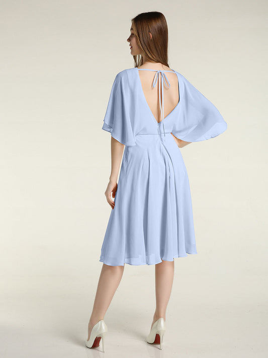 Babaroni SelenaVestidos cortos de chiffon con escote tipo scoop y mangas de volantes Azul Cielo