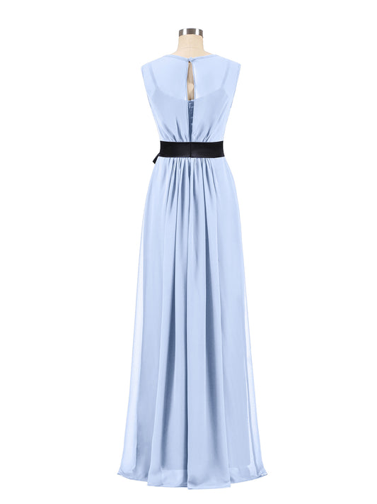 Babaroni LaurenVestidos largos de chiffon estilo princesa con abertura Azul Cielo