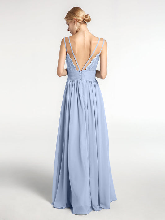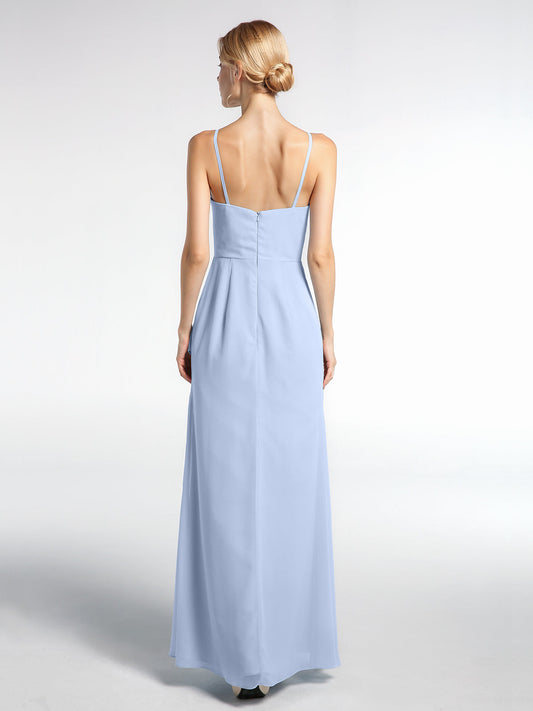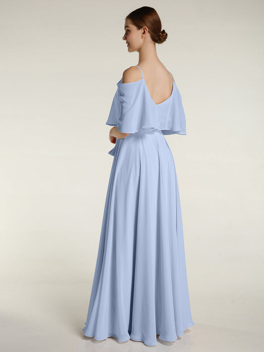 Babaroni CoraVestido largo de dama de honor de chiffon con tirantes dobles Azul Cielo
