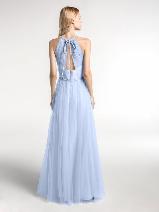 Babaroni ReneeVestido sexy maxi de chiffon con cuello halter y espalda baja Azul Cielo