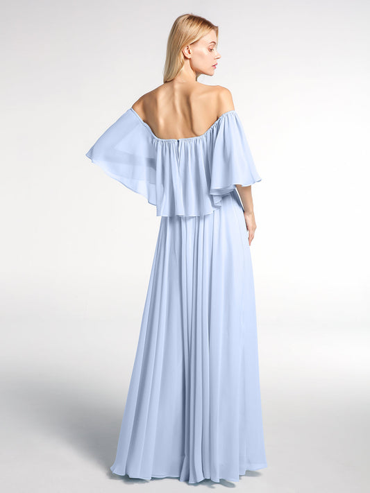 Babaroni RoseVestido maxi de chiffon con hombros descubiertos y volantes Azul Cielo