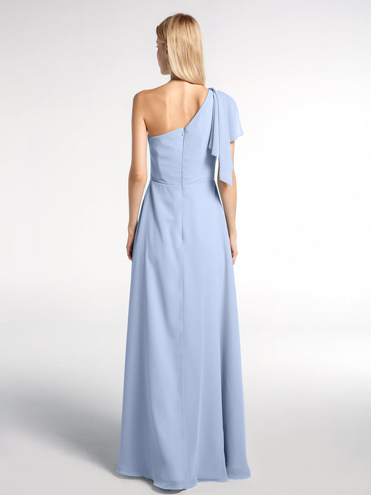 Babaroni SalomeVestido maxi de chiffon de un solo hombro con detalle en cascada Azul Cielo