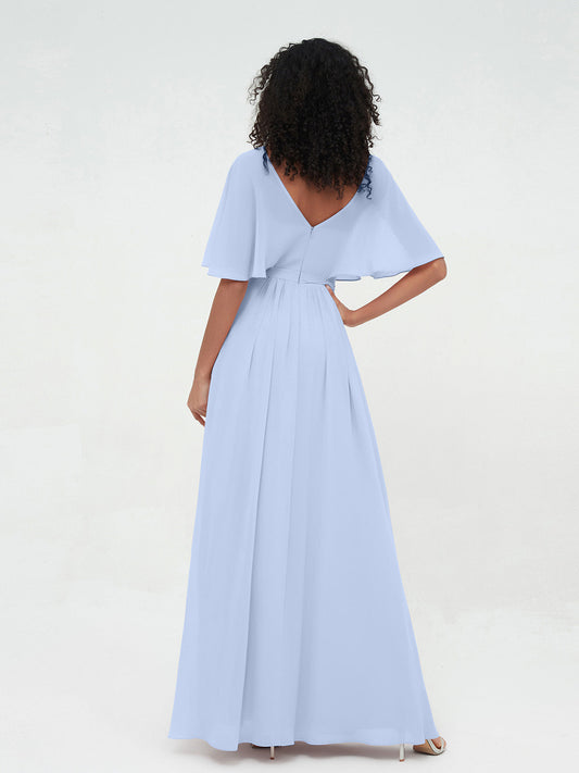 Babaroni UnaVestidos máximos de chiffon con escote en V profundo y mangas 1/2 Azul Cielo