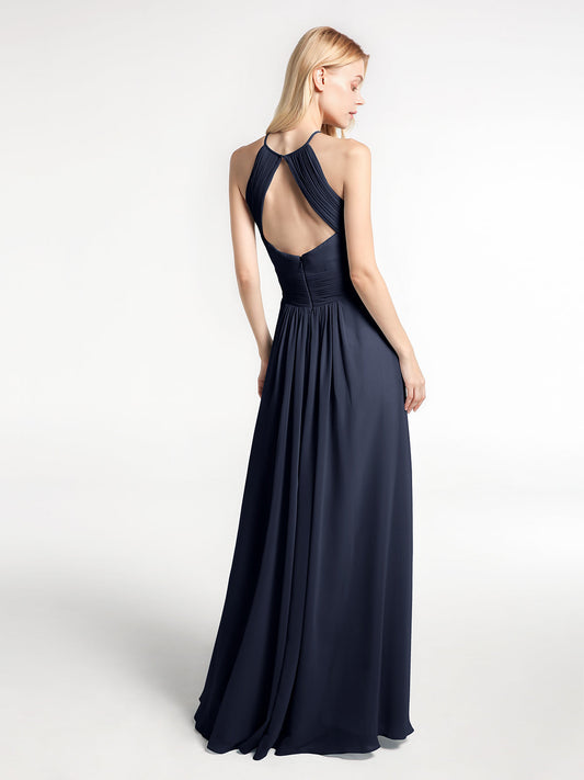Babaroni IvyVestidos máximos de chiffon estilo halter con hombros descubiertos Azul Marino