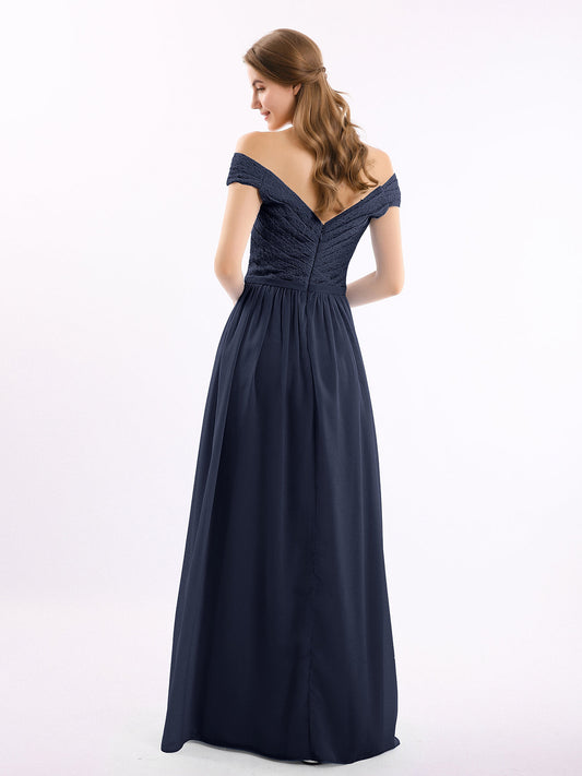Babaroni NanaVestidos de dama de honor con hombros descubiertos y tirantes finos Azul Marino