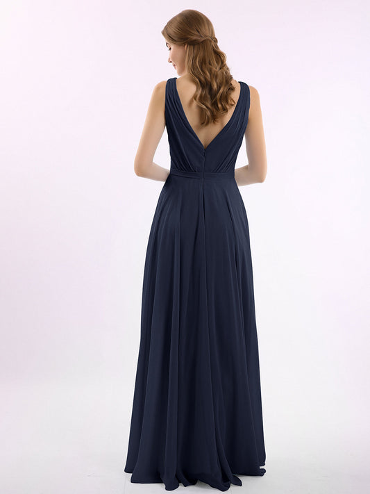 Babaroni VickyVestidos de dama de honor de chiffon con escote en V y tirantes finos Azul Marino