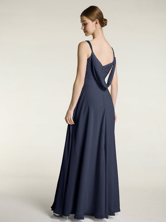 Crea un ambiente sofisticado y elegante con nuestra impresionante colección de vestidos de dama de honor en azul marino oscuro. Estos tonos versátiles complementarán cualquier tema de boda y crearán un aspecto refinado y pulido.