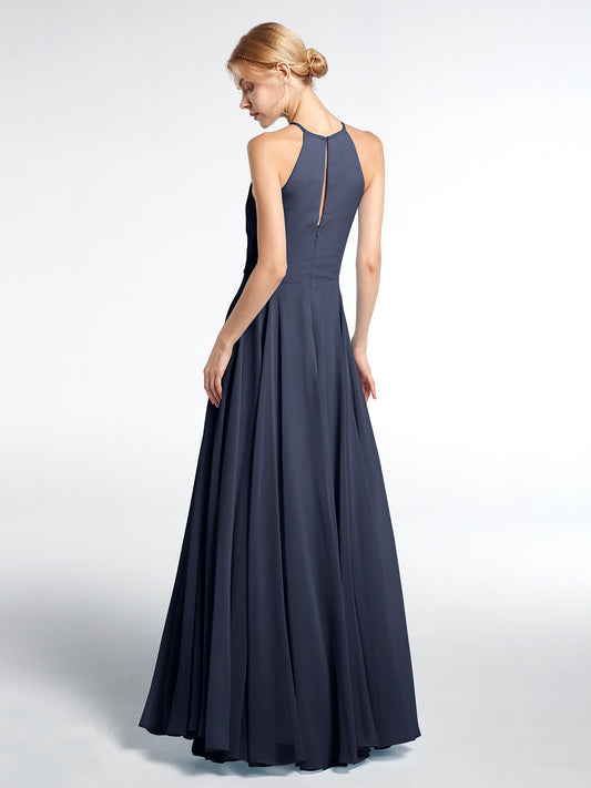 Babaroni SandraVestidos sencillos de dama de honor de chiffon con espalda baja Azul Marino