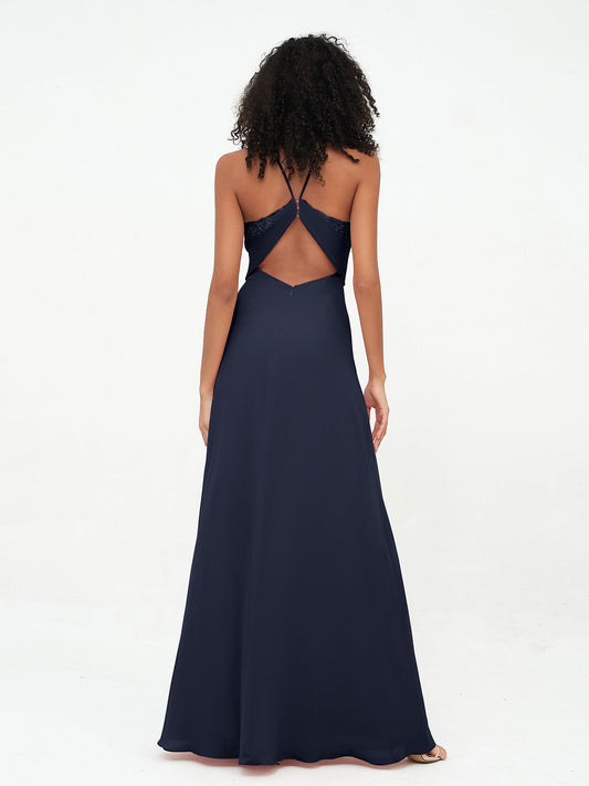 Babaroni FrancesVestidos de halter con top de encaje y espalda descubierta de gasa Azul Marino