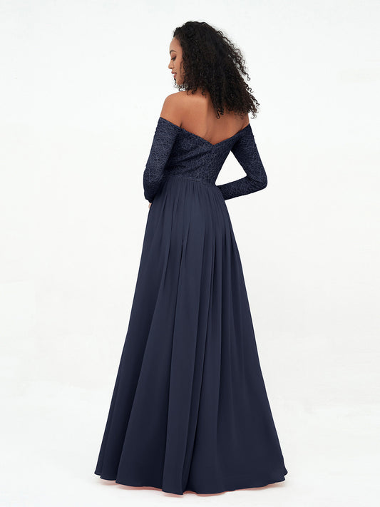 Babaroni JoannaVestidos largos de encaje con mangas largas y hombros descubiertos Azul Marino