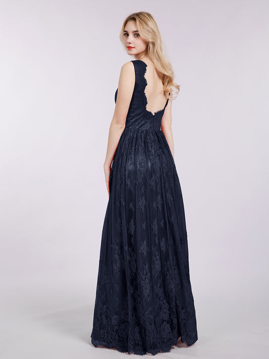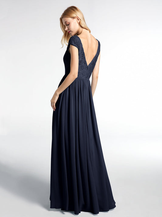 Babaroni LaraineVestido maxi con cuerpo de encaje y falda de chiffon con escote en V Azul Marino