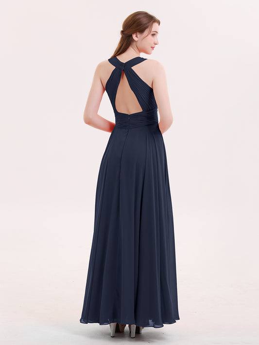 Babaroni TobeyTobey Cabestro Gasa Vestido De Dama De Honor De Espalda Abierta Azul Marino