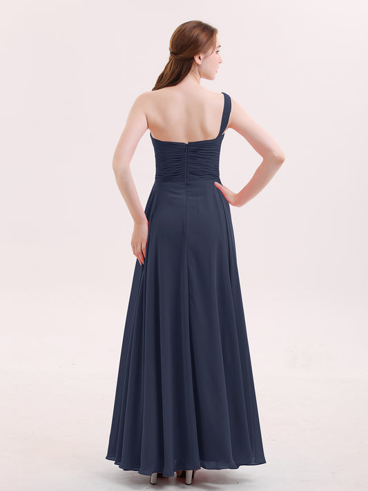 Babaroni YeddaYedda Un Hombro Gasa Largo Corte De Dama De Honor Azul Marino