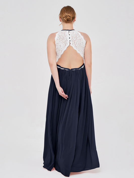 Babaroni DorisDoris Cabestro Gasa Maxi Vestido De Dama De Honor Azul Marino