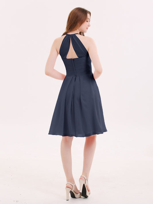 Babaroni OlgaOlga Corto Gasa Vestido De Dama De Honor Con Bolsillo Azul Marino