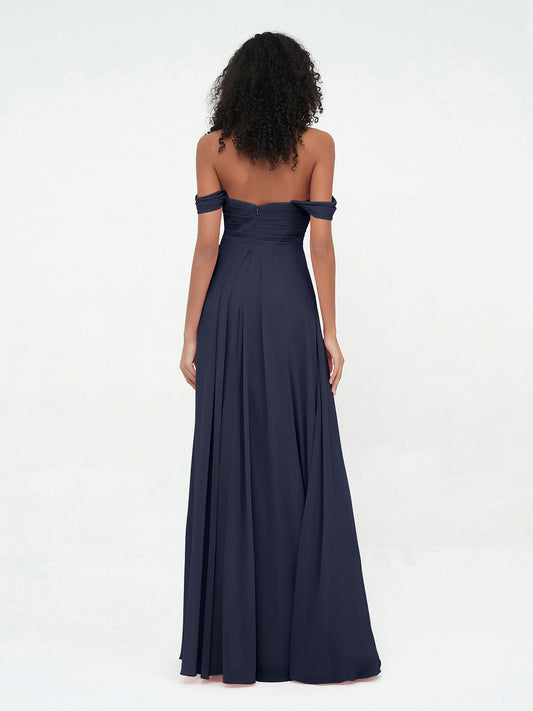 Babaroni LindsayLindsay Fuera Del Hombro Corte Imperial Vestidos De Dama De Honor Azul Marino