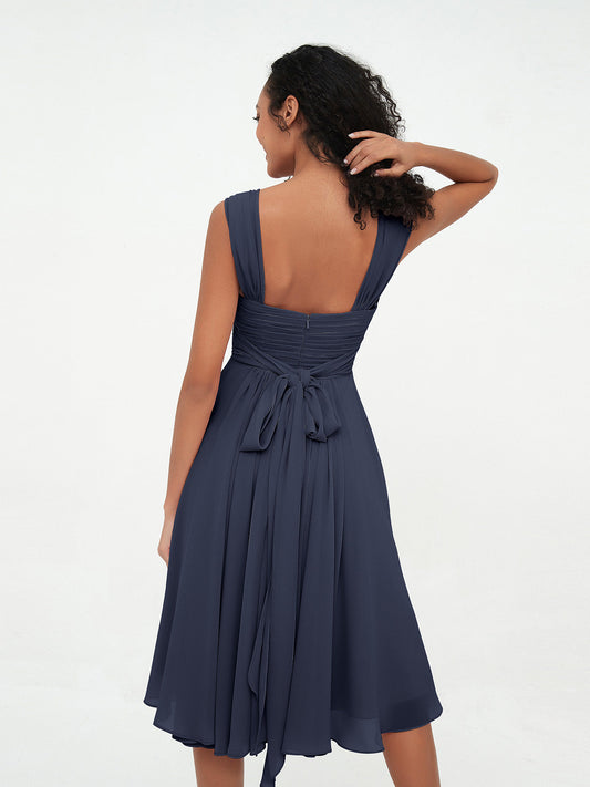 Babaroni IdaVestidos cortos de chiffon estilo imperio con bolsillos Azul Marino
