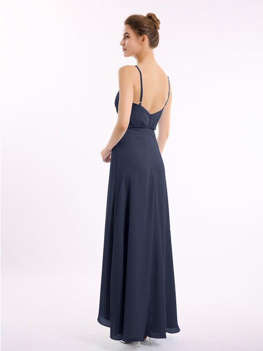Babaroni OliveVestidos de chiffon con tirantes finos y largo asimétrico con lazo Azul Marino