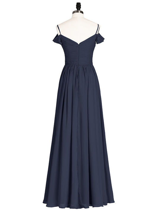 Babaroni PrudencePrudence Un Hombro Gasa Largo Cortes De Dama De Honor Azul Marino