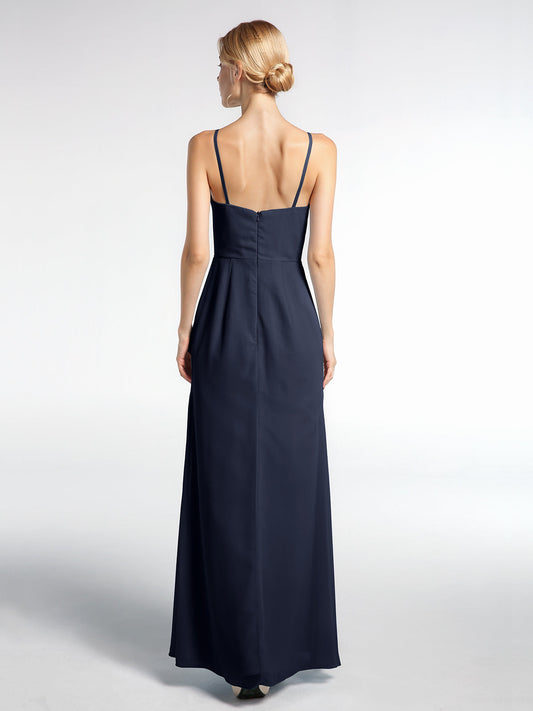 Babaroni NatalieVestido maxi simple de chiffon con escote en V y tirantes finos Azul Marino