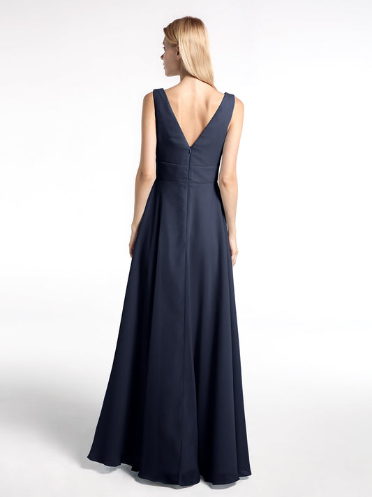 Babaroni SibylVestido largo de chiffon sencillo con escote en forma de muesca Azul Marino