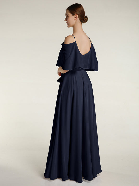 Babaroni CoraVestido largo de dama de honor de chiffon con tirantes dobles Azul Marino