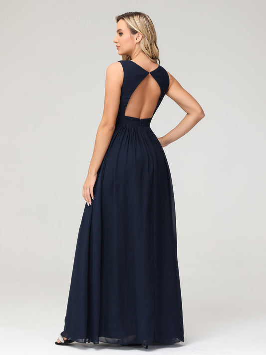 Babaroni DanaVestidos largos de chiffon con escote en V y espalda abierta Azul Marino