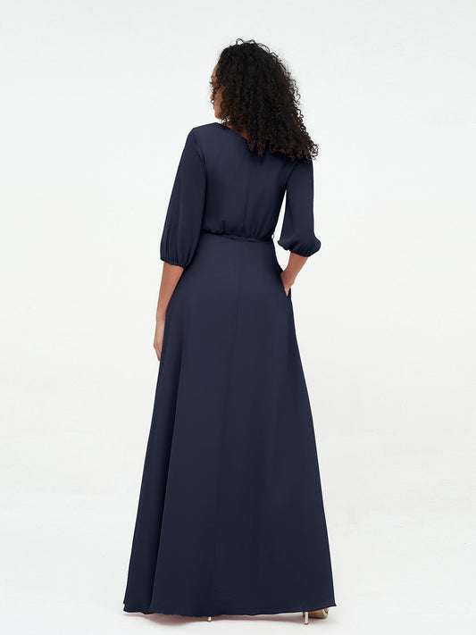 Babaroni UnaVestidos máximos de chiffon con escote en V profundo y mangas 1/2 Azul Marino