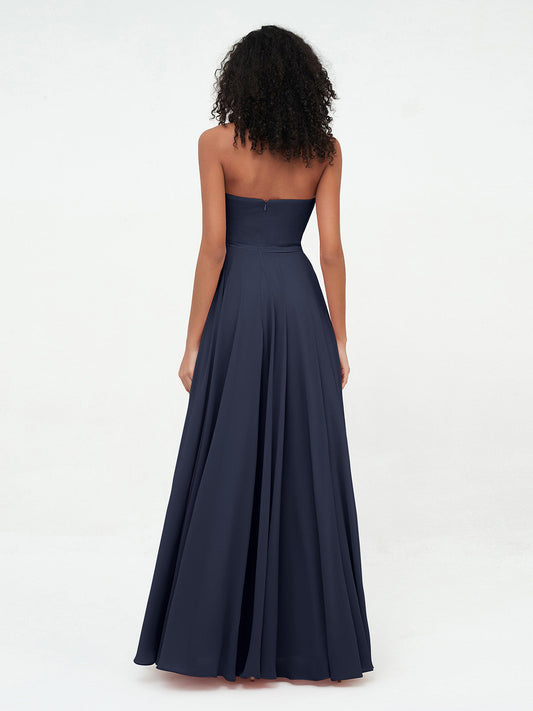 Babaroni YvonneVestidos largos de chiffon sin tirantes y escote corazón Azul Marino