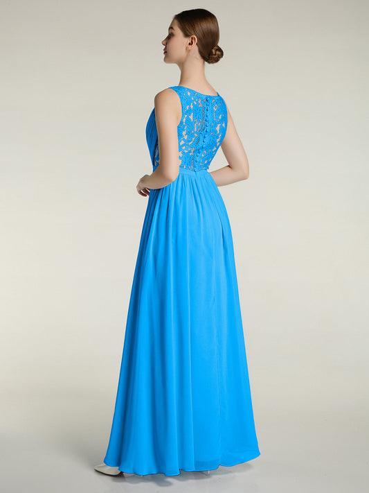 Babaroni MariaVestidos largos de chiffon de cuello en Y para damas de honor Azul Océano
