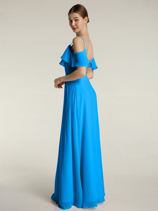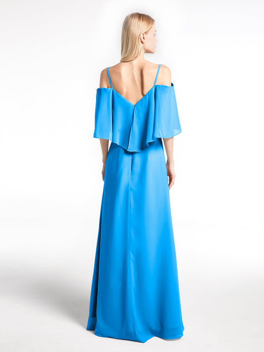 Babaroni JuliaVestidos largos de chiffon con tirantes finos y escote en V Azul Océano