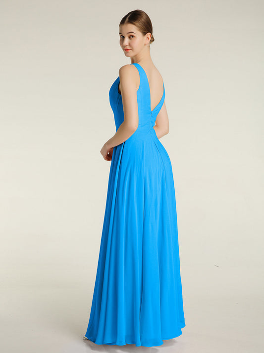 Babaroni CarolVestidos sencillos de chiffon con escote en V Azul Océano