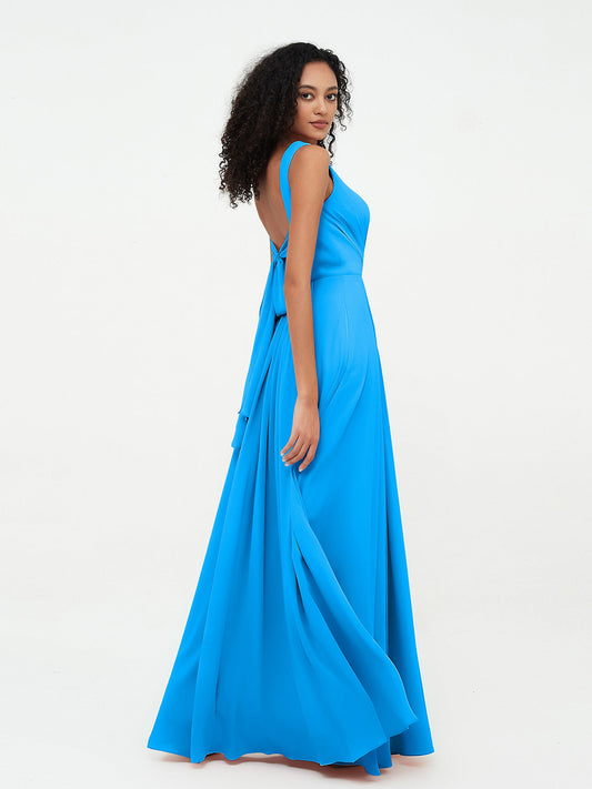 Babaroni VitaVestido de dama de honor de chiffon con escote en V y espalda descubierta Azul Océano