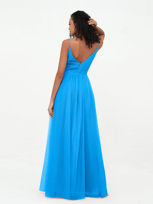 Babaroni MarjorieVestidos largos de tul plisado con tirantes spaghetti Azul Océano