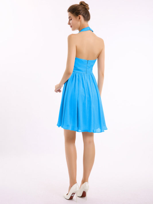 Babaroni SylviaVestidos cortos de dama de honor de chiffon estilo halter Azul Océano