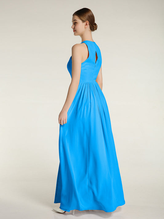 Babaroni AprilVestido sencillo de chiffon estilo halter con abertura Azul Océano