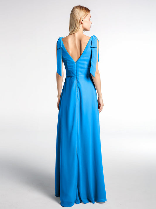 Babaroni IrmaVestido maxi de chiffon con tirantes planos y lazo con abertura frontal Azul Océano