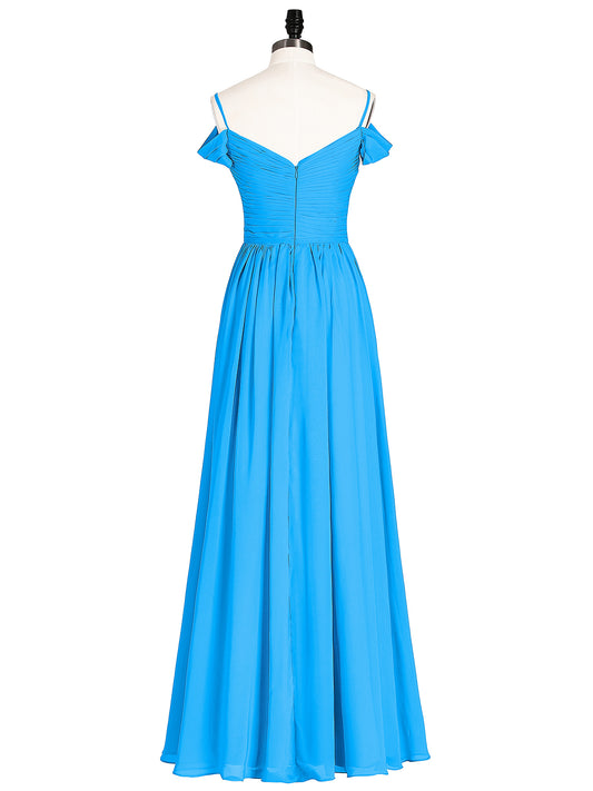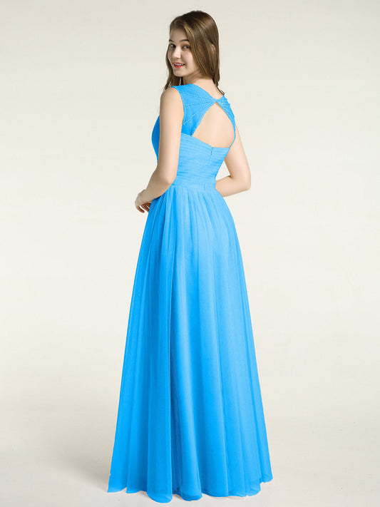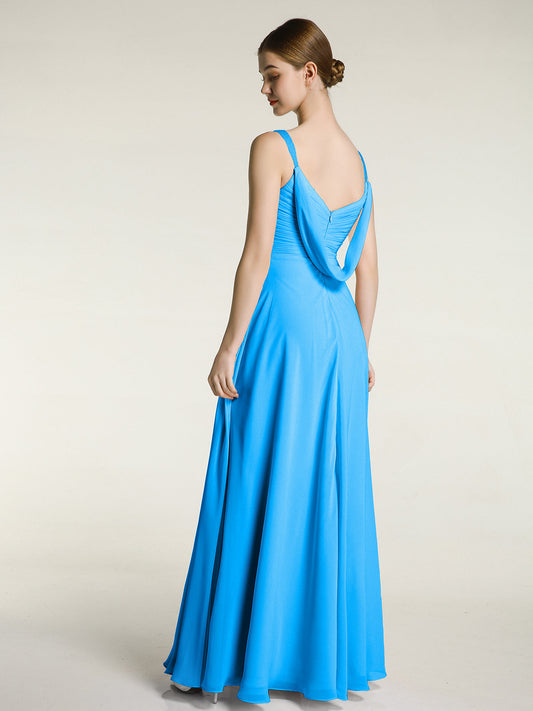 Babaroni VitaVestido de dama de honor de chiffon con escote en V y espalda descubierta Azul Océano