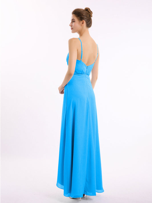 Babaroni OliveVestidos de chiffon con tirantes finos y largo asimétrico con lazo Azul Océano