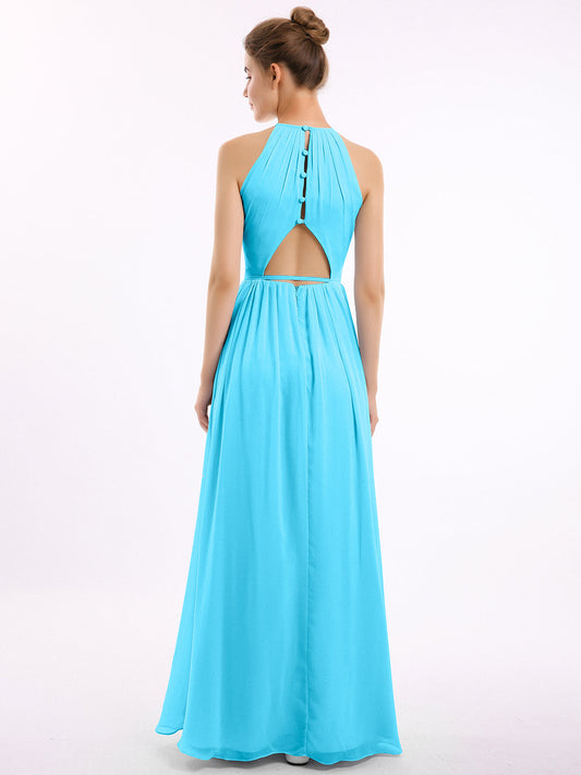Babaroni CynthiaVestidos largos de chiffon estilo halter con espalda descubierta Piscina