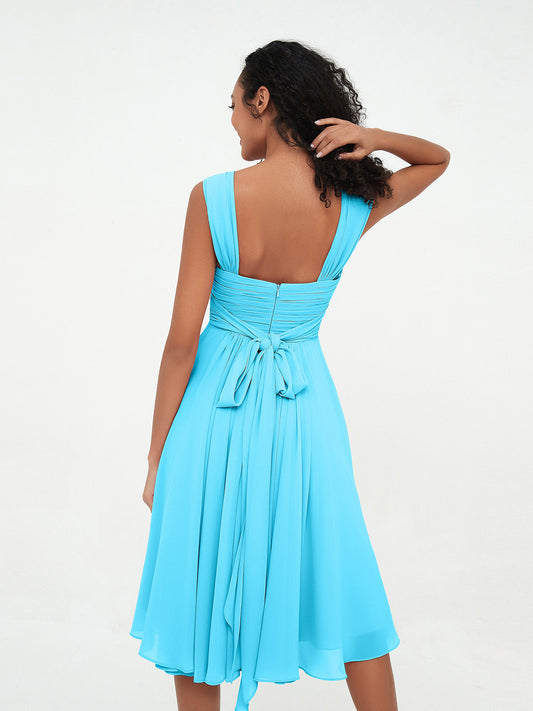 Babaroni DaphneVestido de chiffon con escote en V y tirantes de lazo Piscina