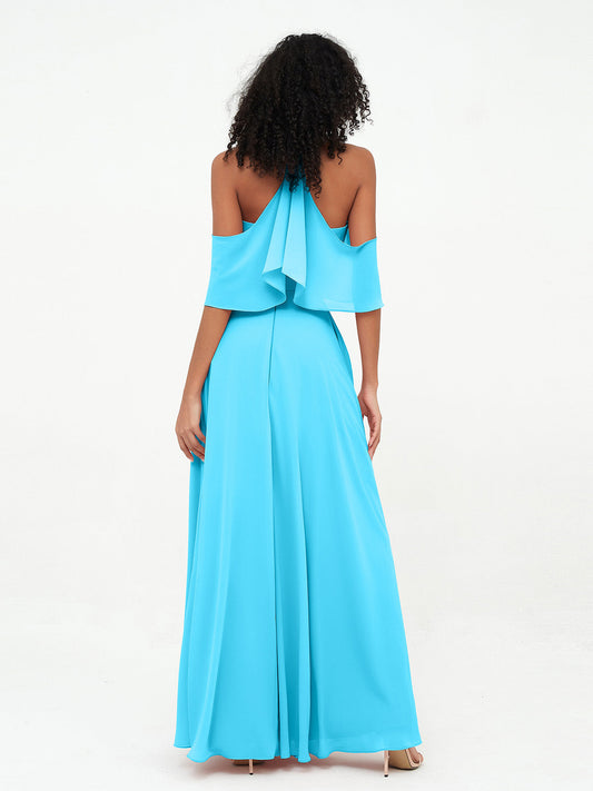 Babaroni IvyVestidos máximos de chiffon estilo halter con hombros descubiertos Piscina