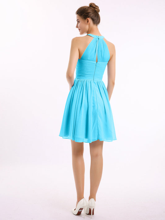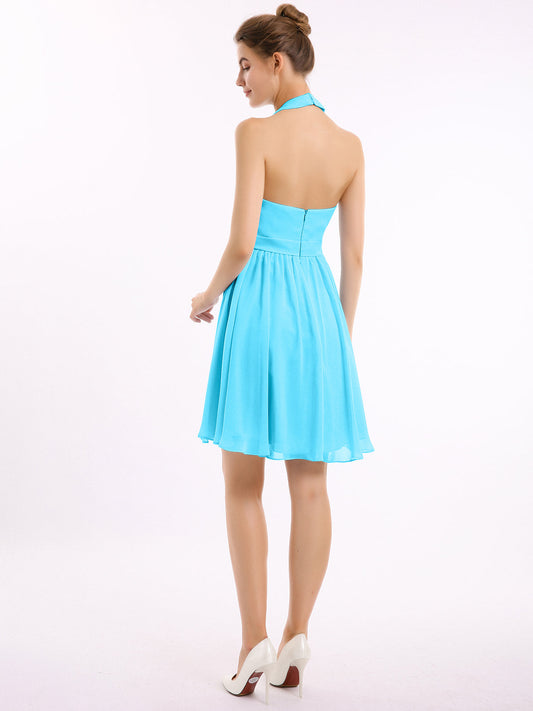 Babaroni KyreneVestidos cortos de chiffon estilo halter para damas de honor Piscina