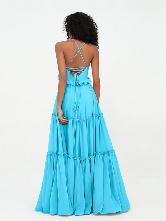 Babaroni UrsulaVestidos máximos bohemios de chiffon con falda escalonada estilo Empire Piscina
