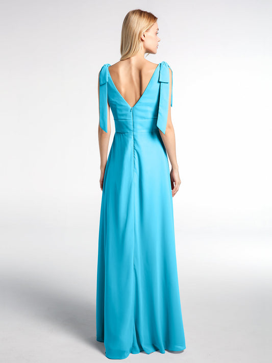 Babaroni VitaVestido de dama de honor de chiffon con escote en V y espalda descubierta Piscina