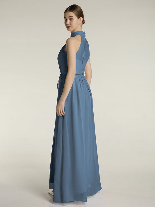 Babaroni MandyVestidos largos de chiffon estilo halter para damas de honor Azul Pizarra