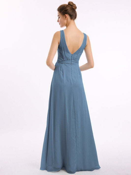 Babaroni LeeVestidos de dama de honor de chiffon con tirantes spaghetti y escote en V Azul Pizarra