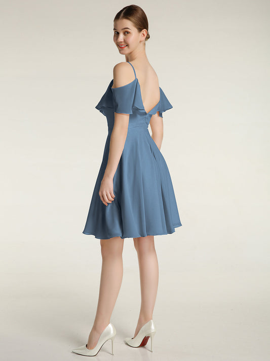 Babaroni SelenaVestidos cortos de chiffon con escote tipo scoop y mangas de volantes Azul Pizarra