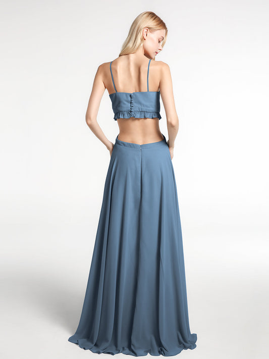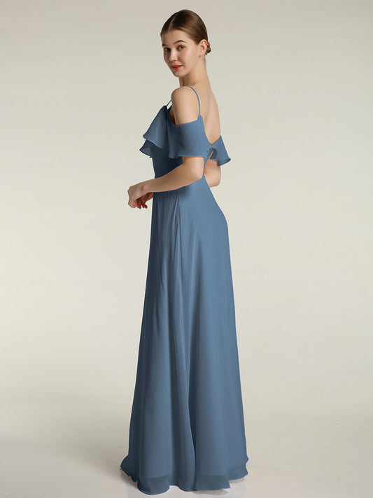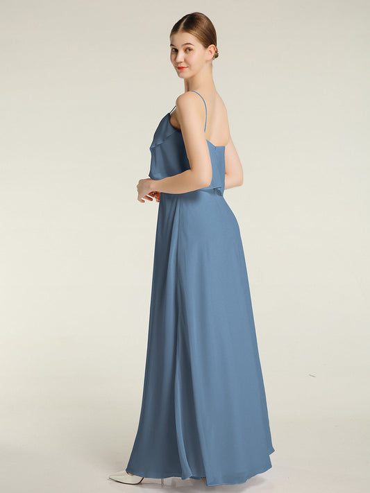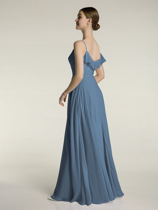 Babaroni JuliaVestidos largos de chiffon con tirantes finos y escote en V Azul Pizarra