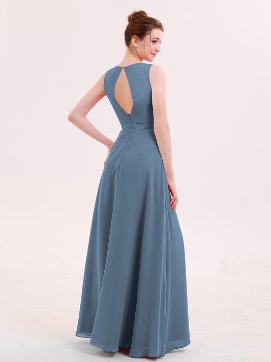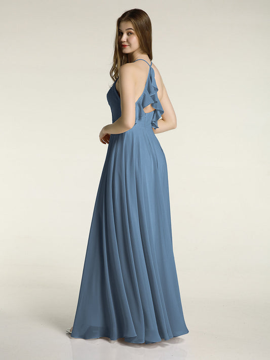 Babaroni AmyVestidos largos de dama de honor de chiffon con tirantes de cuello halter Azul Pizarra